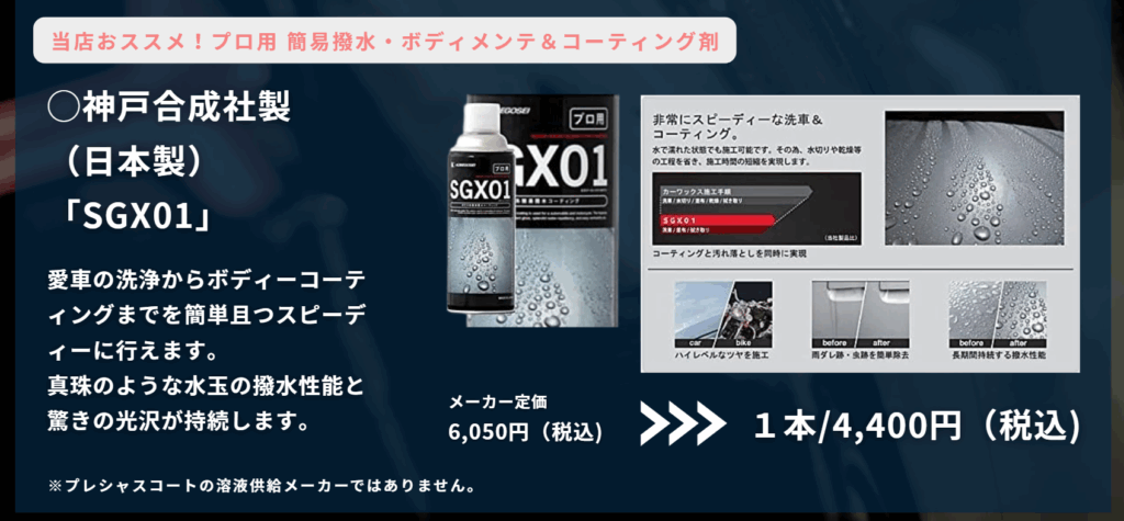 その液剤レベルはディーラーでは5年クラスに匹敵する性能被膜です。
